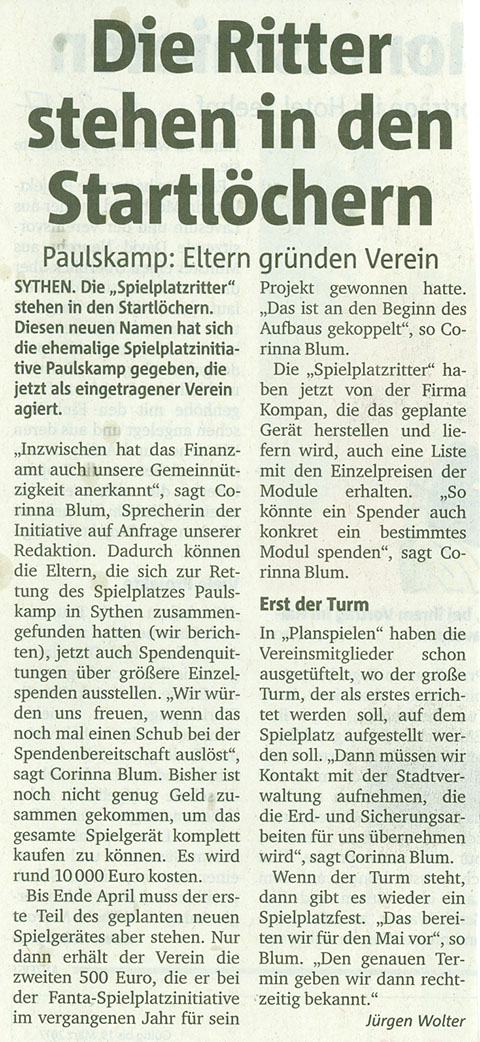 Medienberichte über die Spielplatzritter