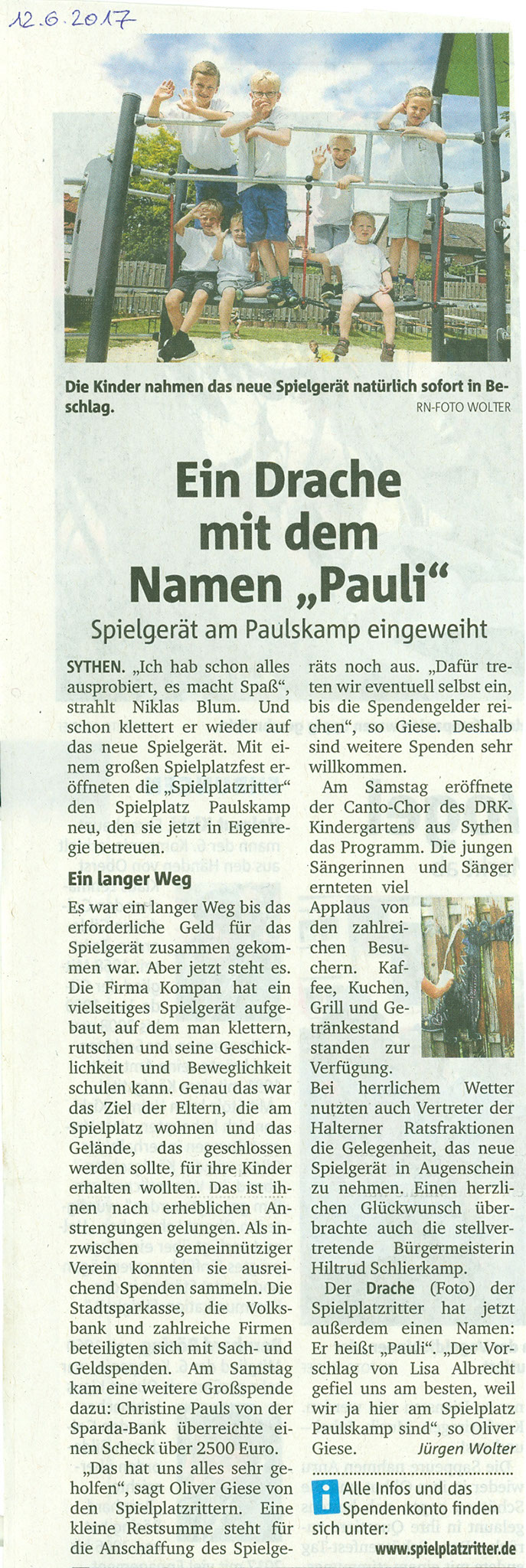 Zeitungsbericht Spielplatzfest